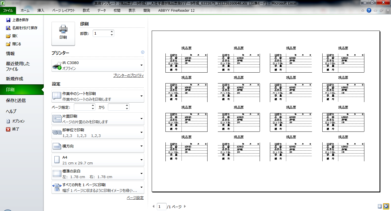 現品票作成テンプレートは、複数の現品票をEXCEL形式で出力させて、簡単に印刷できます。