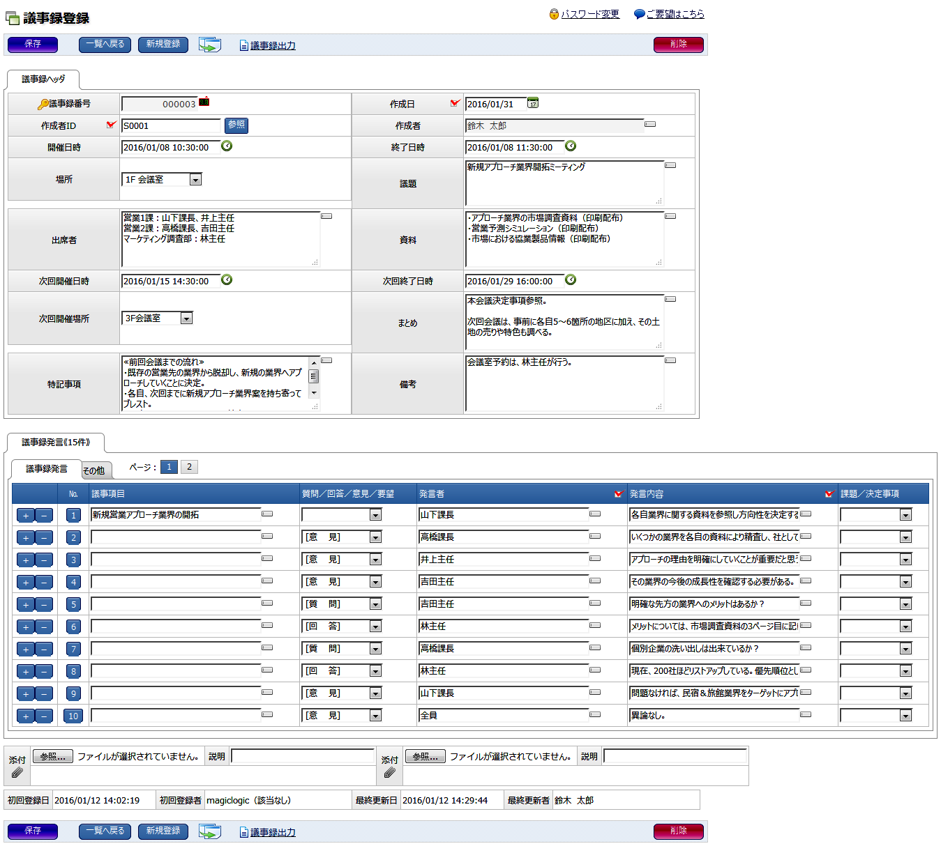 ■議事録管理画面
