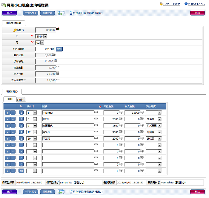経費データの登録時明細部分を入力することで、受入合計や支払合計などが自動集計されます。