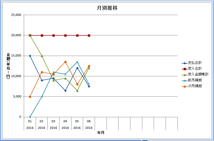 受入合計や支払合計といった集計結果の月別推移グラフも作成されます。
